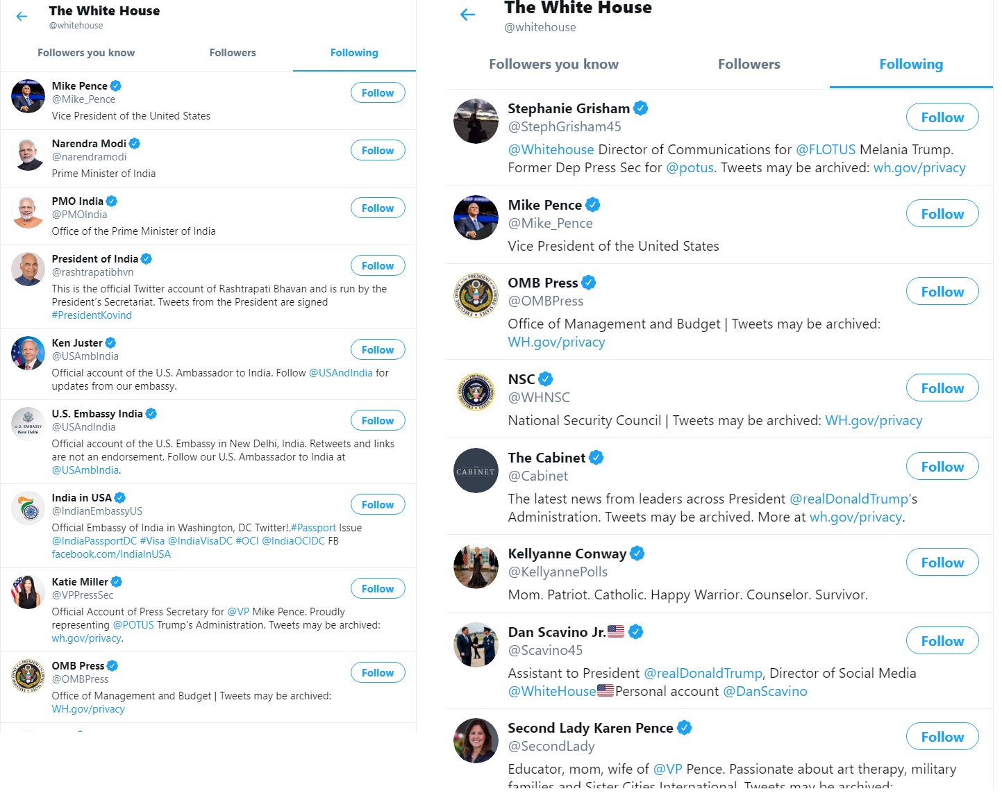 The Official Handle of The United states prime minister on Twitter, The White House, and POTUS Himself unfollowed prime minister Modi on twitter, the White House also Followed President of India, prime minister office of India, the Indian embassy in united states and us embassy in India And Then Later They Unfollow A Every Single id Of Twitter Which Are Belong To India Which is A shocking And A threatening Report of The Friendship Of USA And India
